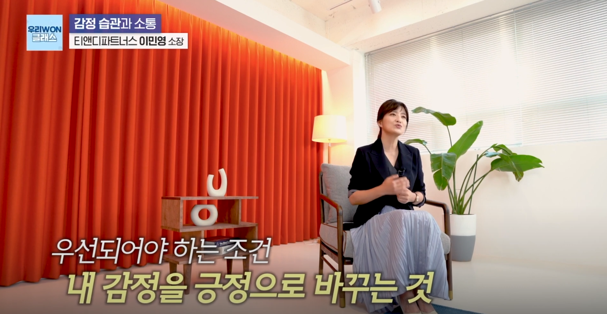 “우선되어야 하는 조건은 내 감정을 긍정으로 바꾸는 것”이라고 강조하며,